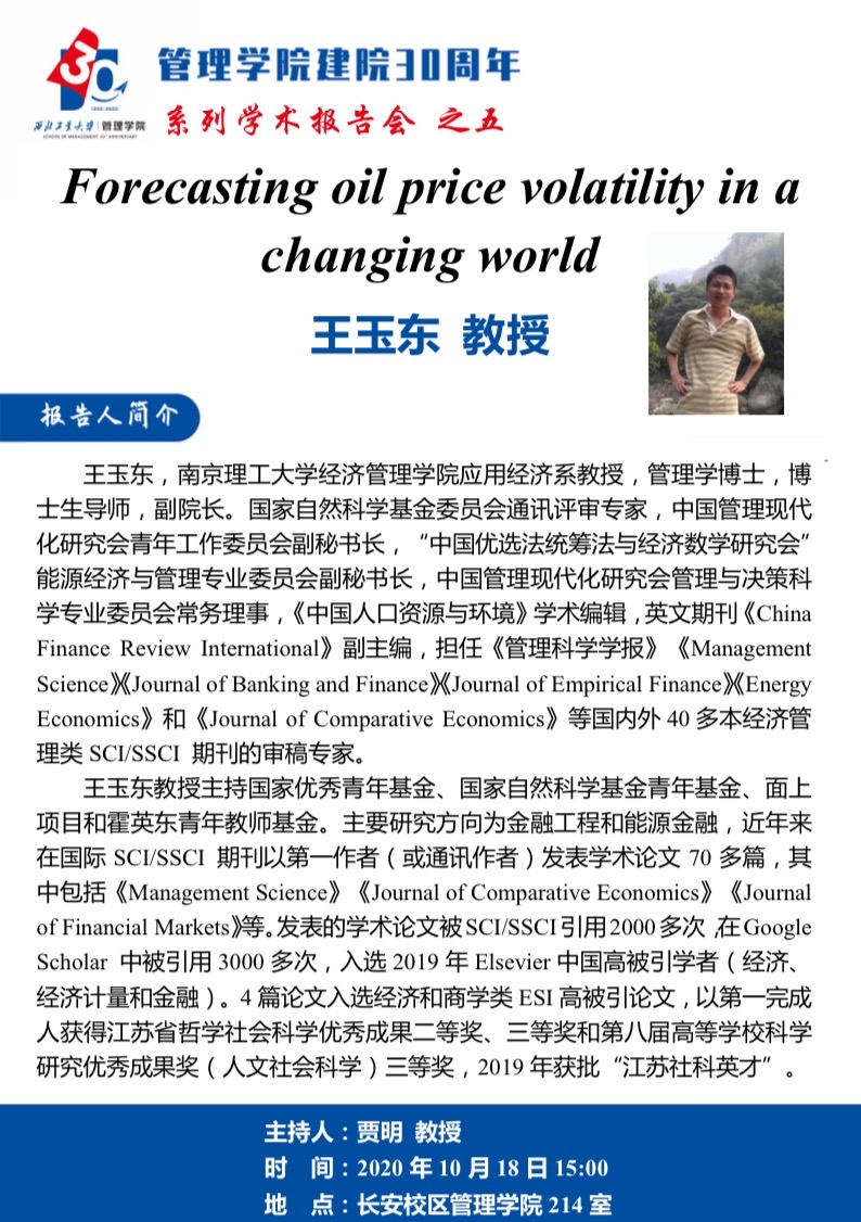 【磁力片 建院30周年系列学术报告会之五】Forecasting oil price volatility in a changing world