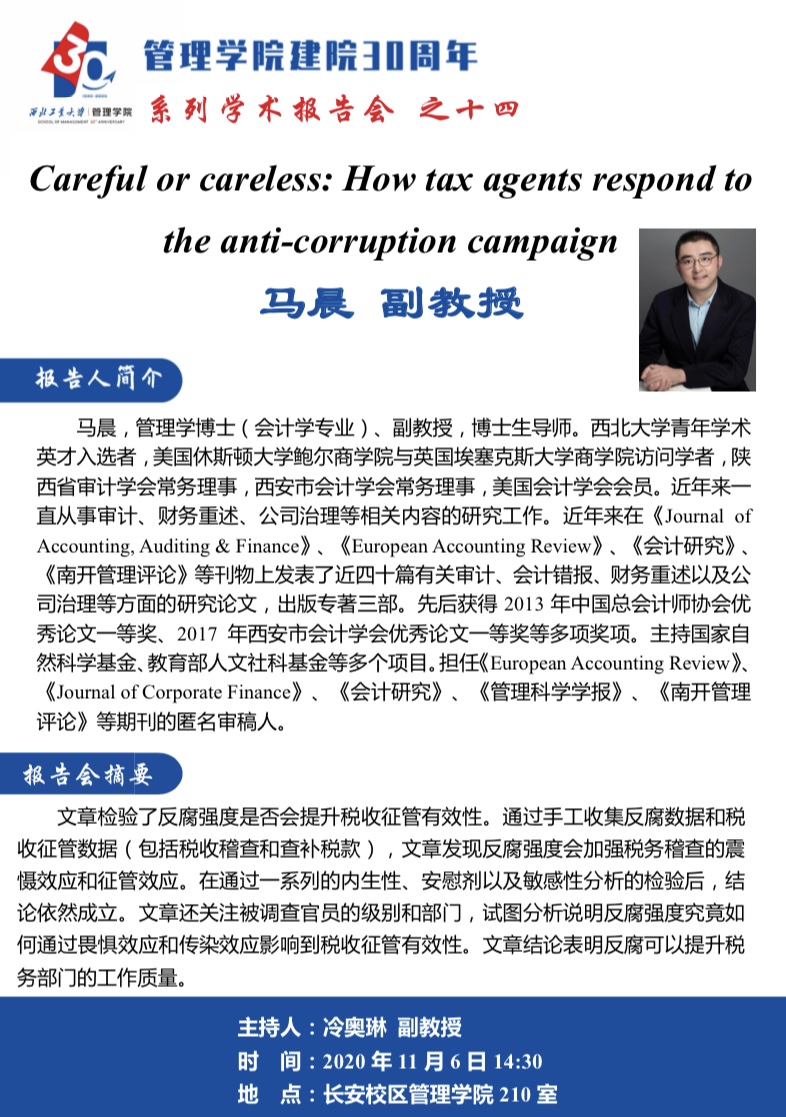 【磁力片 建院30周年系列学术报告会之十四】Careful or careless: How tax agents respond to the anti-corruption campaign