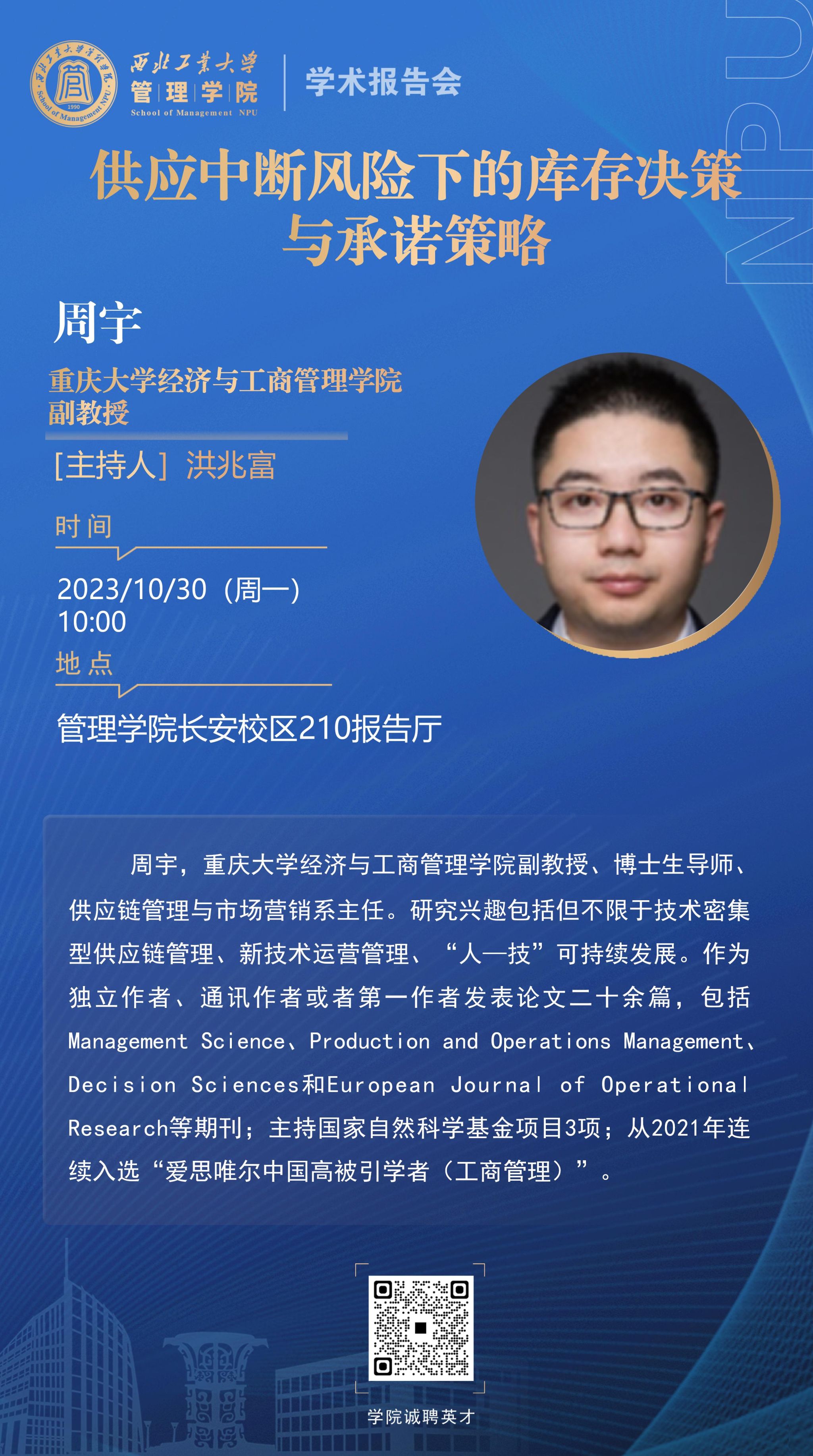 【学术报告】供应中断风险下的库存决策与承诺策略