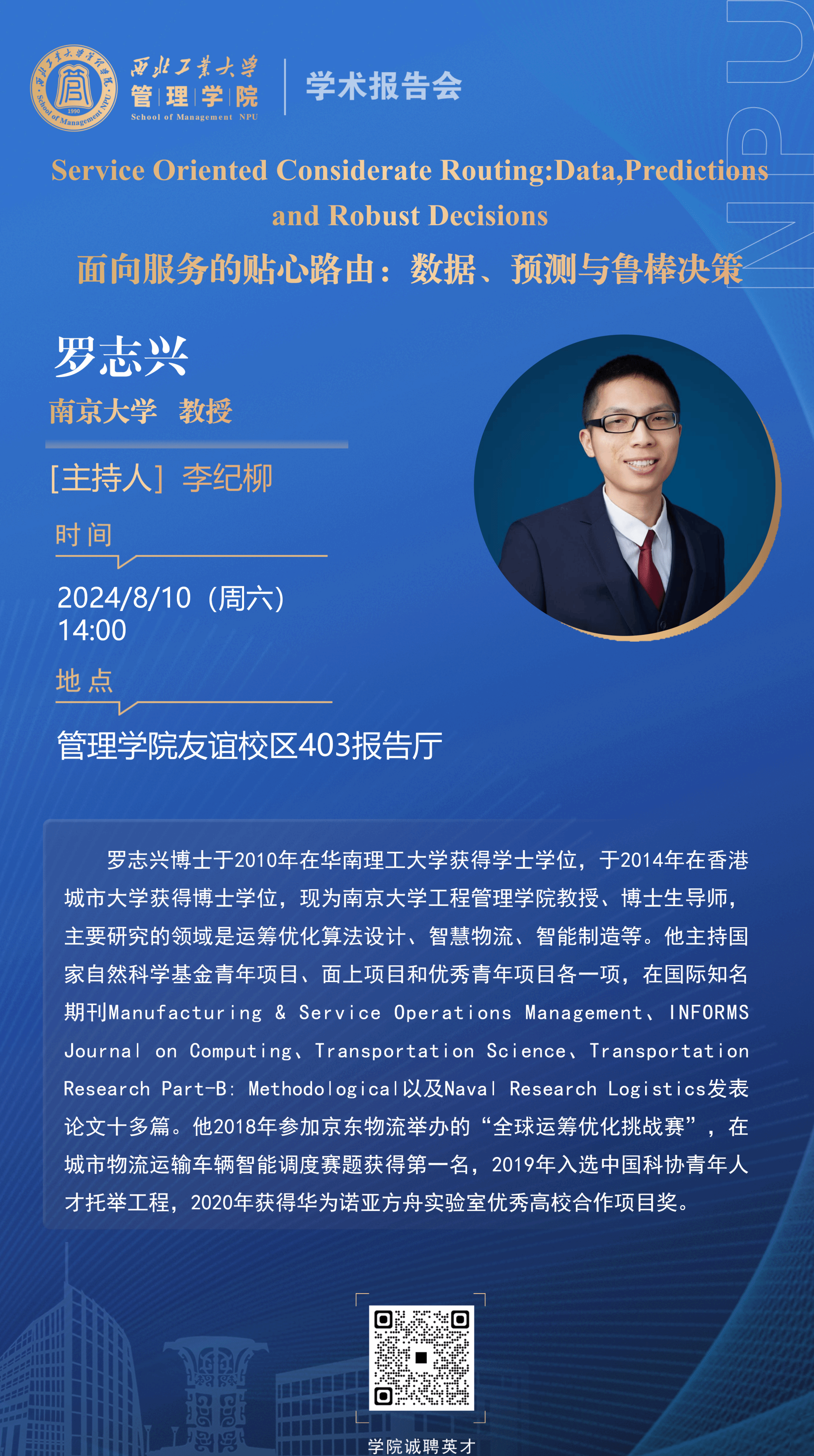 【学术报告】Service Oriented Considerate Routing: Data, Predictions and Robust Decisions面向服务的贴心路由:数据、预测与鲁棒决策