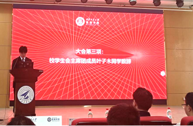 叶子木代表校学生会致辞,他从“筑牢思想根基,把握青春航向”“践行服务宗旨,提升服务实效”“坚持从严治会,巩固改革成果”三个方面提出未来学生会工作努力的方向,不断提升同学满意度、大局贡献度和社会认可度。