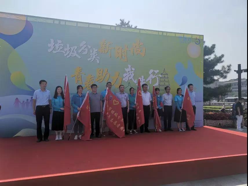 7月26日,实践队到达钟鼓楼广场,搬运物资,搭帐篷,与市政府一同开展“垃圾分类新时尚,青春助力我先行”活动。实践队员刘昊旻同学作为本次活动代表,上台接受西安市政府颁发的“西安市垃圾分类青年志愿者团队”队旗。随后实践队还开展了包括“垃圾分类时尚代言”、“垃圾分类飞镖达人”、“绿色生活体验”等丰富多彩的活动,以游戏的方式向市民宣传分类知识、增强市民垃圾分类意识。