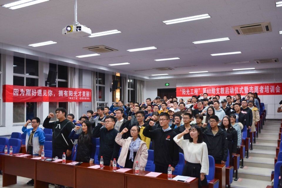 10月19日晚,"阳光工程"青年志愿者服务队第四十期支教启动仪式暨志愿者培训会在磁力片