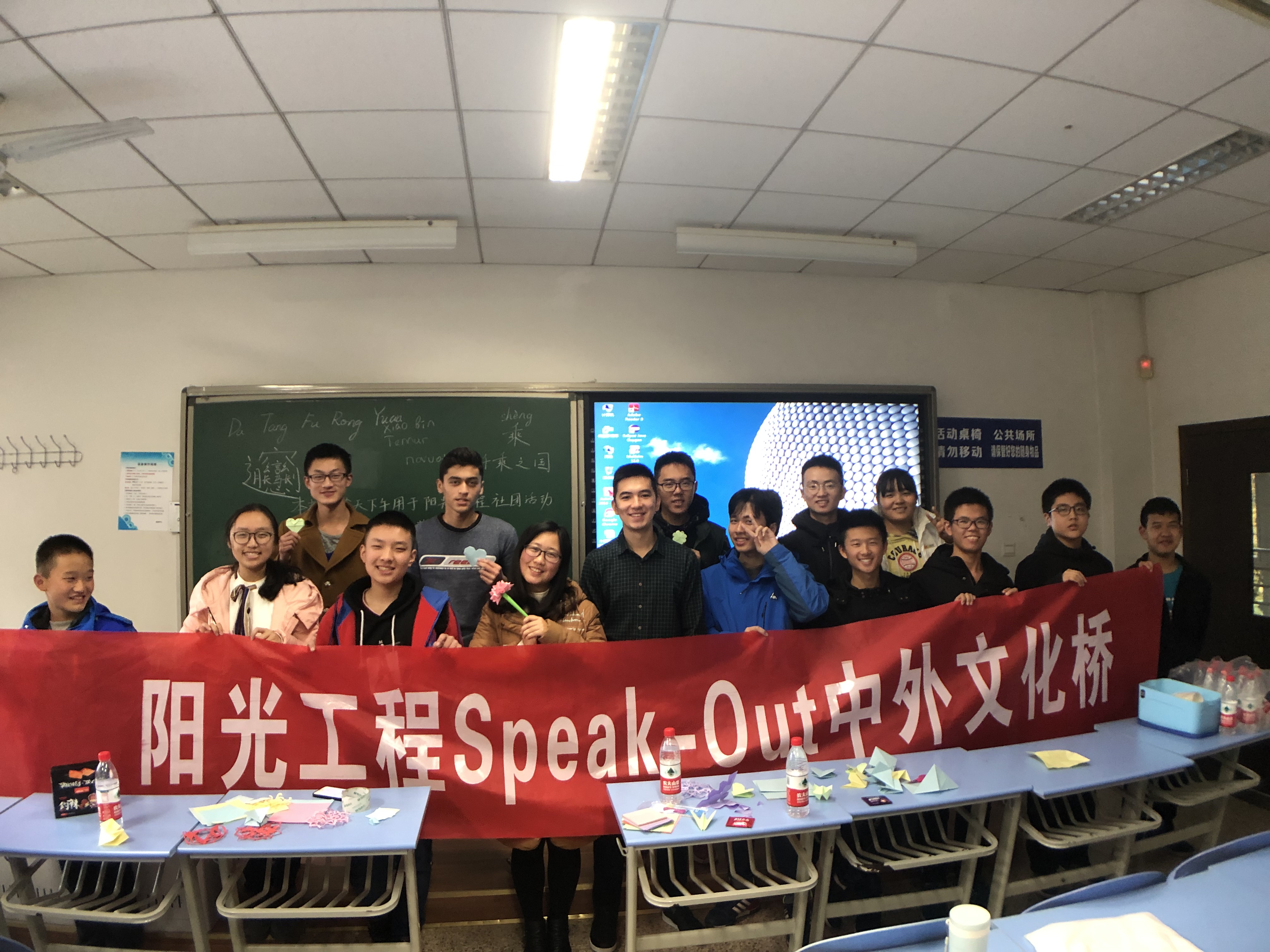 “阳光工程”青年志愿者服务队在教学西楼C座212举办了Speak-Out中外文化桥活动。活动中,来自乌兹别克斯坦的朋友们与“阳光工程”的志愿者们就各国的生活方式、饮食、文化、手工艺等多方面进行了分享,中外学生欢聚一堂,热情交流。