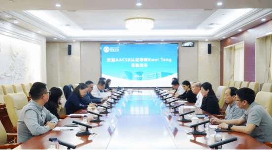 会后,Kwei Tang教授与学院教师围绕认证标准中的关键环节展开深入研讨,就课程国际化、科研影响力提升等议题交换了意见和建议,使大家进一步明晰了国际化建设的行动框架。