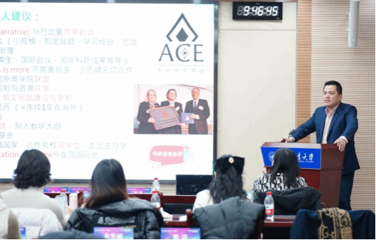 12月16日,沈伟教授分享了《商学院国际化》的主题。沈教授长期致力于教学国际化与商科国际认证领域,本次研讨会他分享了商学院国际认证的价值和EQUIS国际认证的相关经验,结合迪肯大学国际化战略的案例,涉及多元的国际学生计划、全球互联教育模式、鼓励毕业生全球思维等方面。