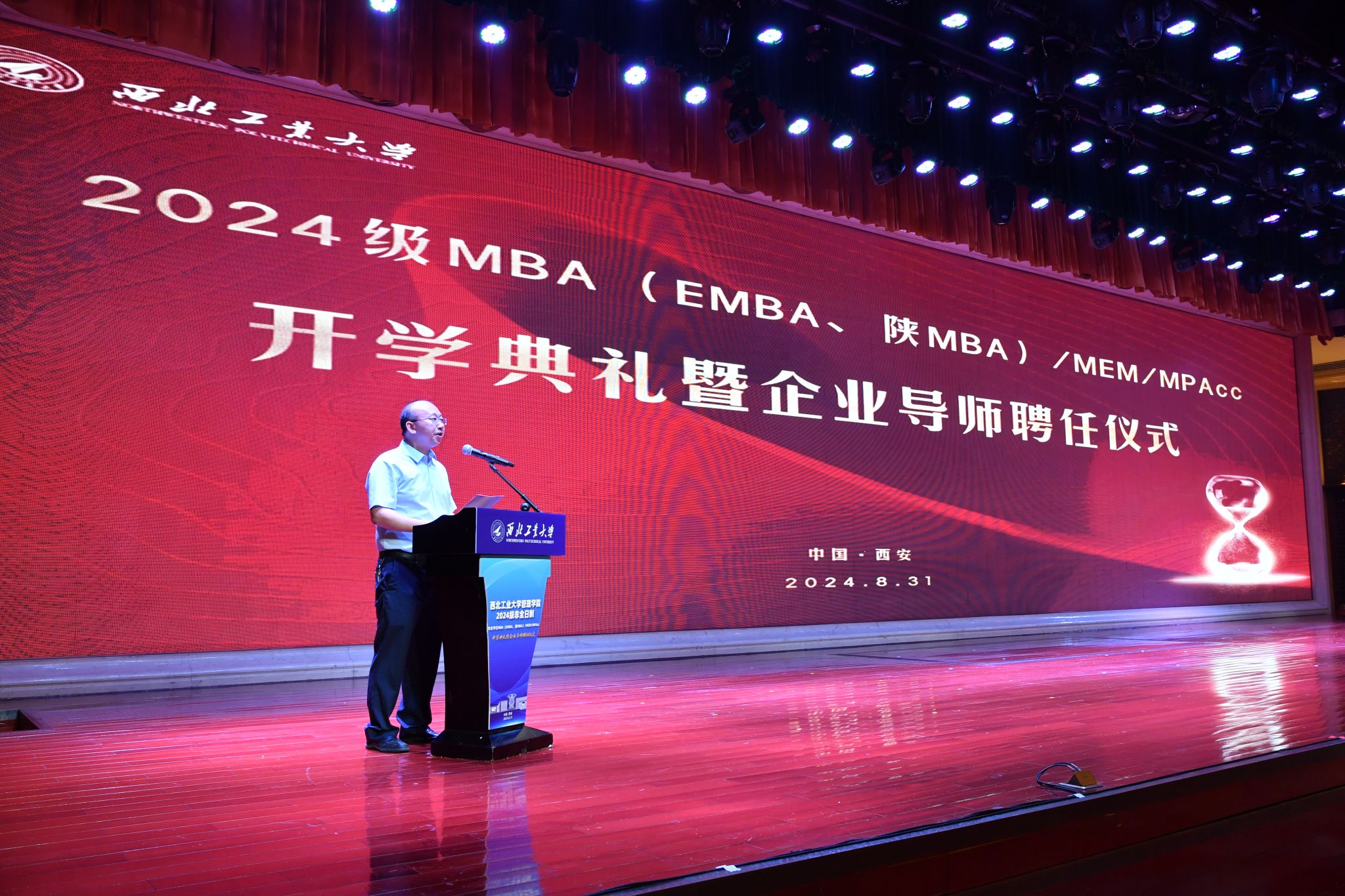 2024级专业学位新生的祝贺和欢迎,他表示学院将通过“课程体系、师资队伍、实践平台、培养机制”四维一体的产教融合培养体系,贯穿总师育人文化,培养具有家国情怀、系统思维、创新精神、国际视野、实践能力及管理素养的复合、应用型高级管理人才。