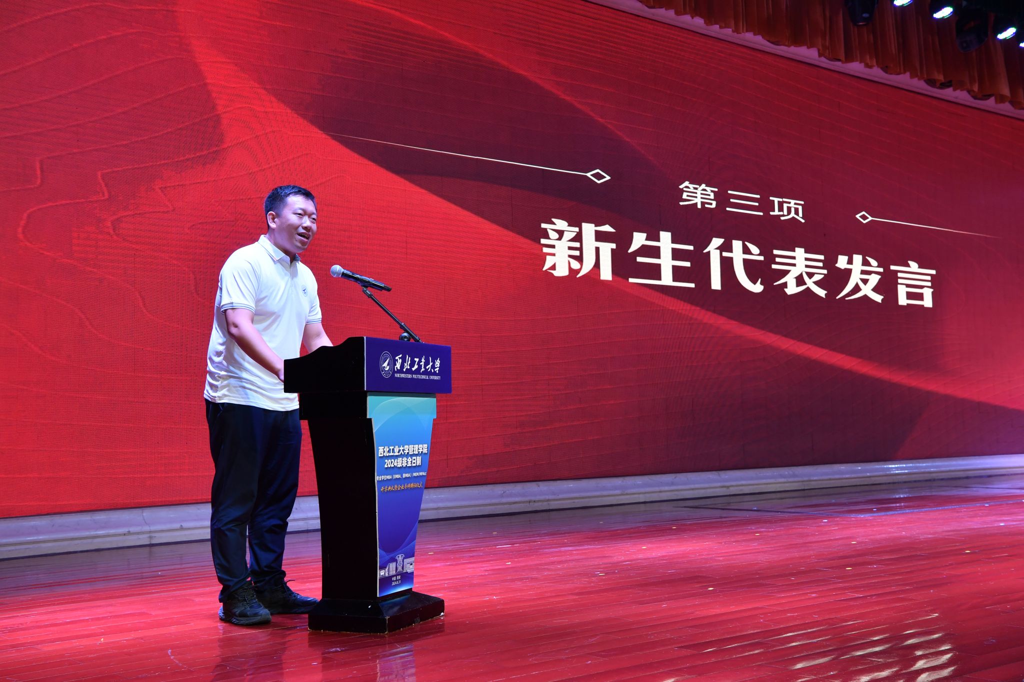 优秀校友任金伟分享求学经历,他表示在西工大遇良师、得益友,收获了毕生的宝贵财富。希望学弟学妹们珍惜学习的机会、勇于尝试、挑战自我,祝愿所有新生收获知识、友谊与成功,创造辉煌的未来。