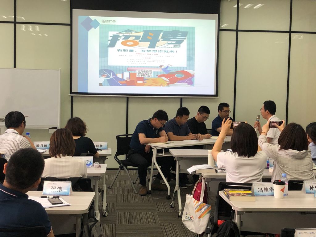 王老师基于战略人力资源管理的框架,从职业经理人和专业HR均衡的视角,围绕人力资源管理的工作分析、员工招聘与测试、绩效管理和薪酬设计四大模块引导同学们进行了深入地理论探讨和案例分析。授课过程不仅让同学们扎实地研习了人力资源管理的理论模型,还通过小组作业和案例讨论这样的自主性学习过程,有效将同学们课前对人力资源管理的粗浅认知升华到科学系统化的人力资源管理知识及能力体系中。