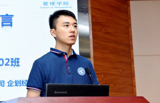 2019级MBA新生代表田舜、2019级MEM新生代表宋波和2019级MPAcc 新生代表艾格帆3位同学代表全体新生发言,让大家回忆起一年多躬耕苦读的酸甜苦辣,也让同学们憧憬着未来三年忙碌而充实的校园生活。