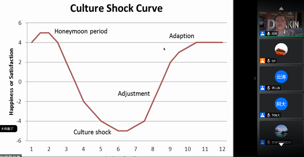 最后,沈教授与同学们展开线上交流互动,对于同学提出的“如何应对企业跨地域水土不服、文明冲突”等问题,做出了清晰的分析与解答,帮助同学解决跨文化管理问题。沈教授对跨地域文化的理解深入而且专业,结合实际案例和有效互动,深入浅出的分析了跨国文化差异,同学们纷纷表示受益匪浅。