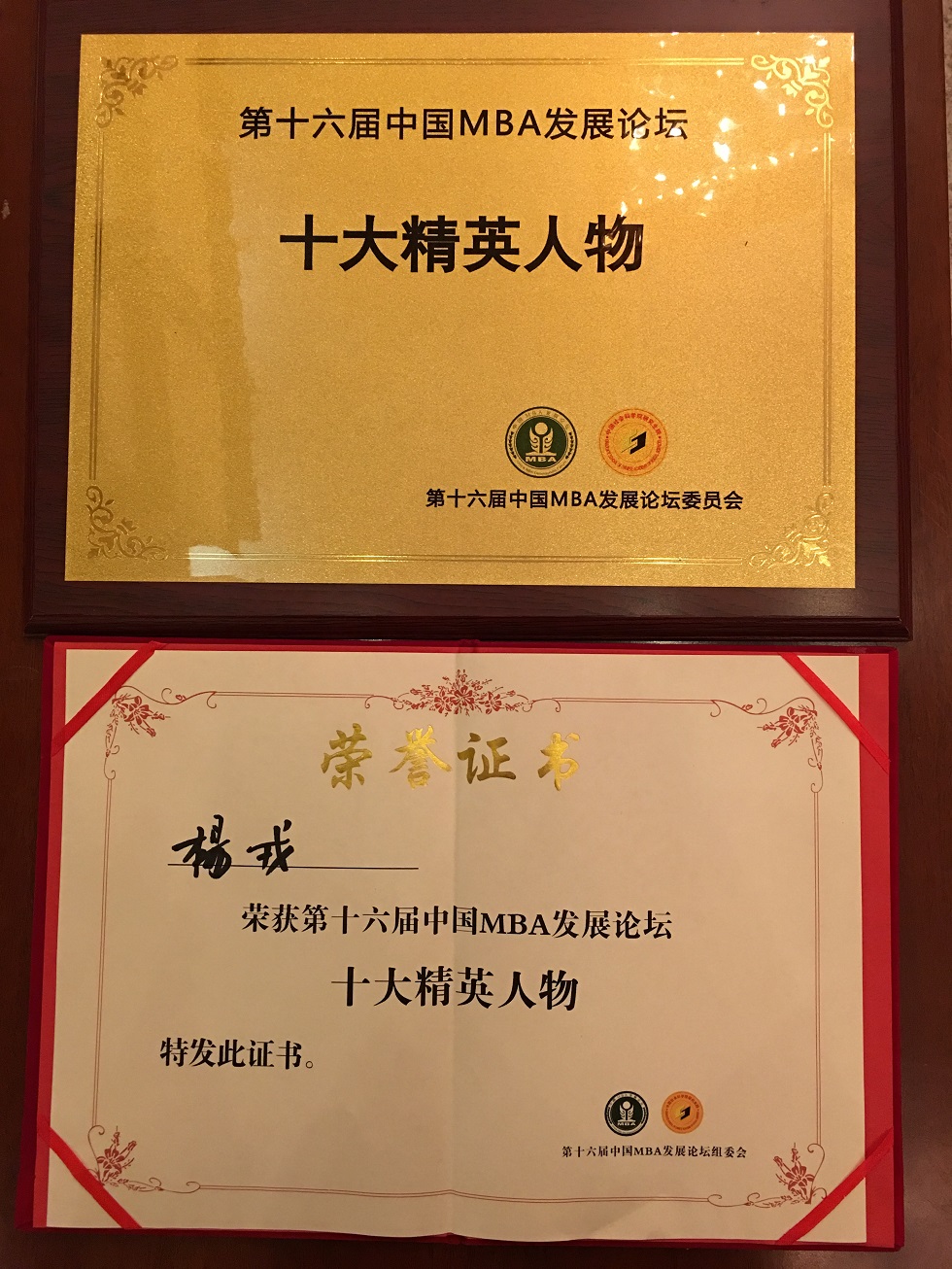 MBA校友杨戎与北京大学、中国人民大学等10所著名高校的候选人共同荣获2016年度“中国MBA十大精英人物”。