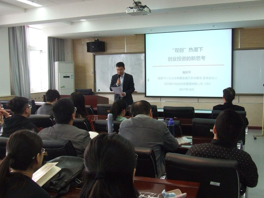 特别邀请施安平(深圳国中创业投资管理有限公司、中小企业发展基金(深圳有限合伙)首席合伙人、CEO)、吴文辉(江西中科九峰移动医疗科技有限公司创始人、董事长)、蒲小川(上海义禧资产管理公司董事长、陕西金控集团董事、陕西省决策咨询委员会委员)三位讲座教授分别从投资机构、创业者、大学责任的角度做了系列讲座。讲座由磁力片