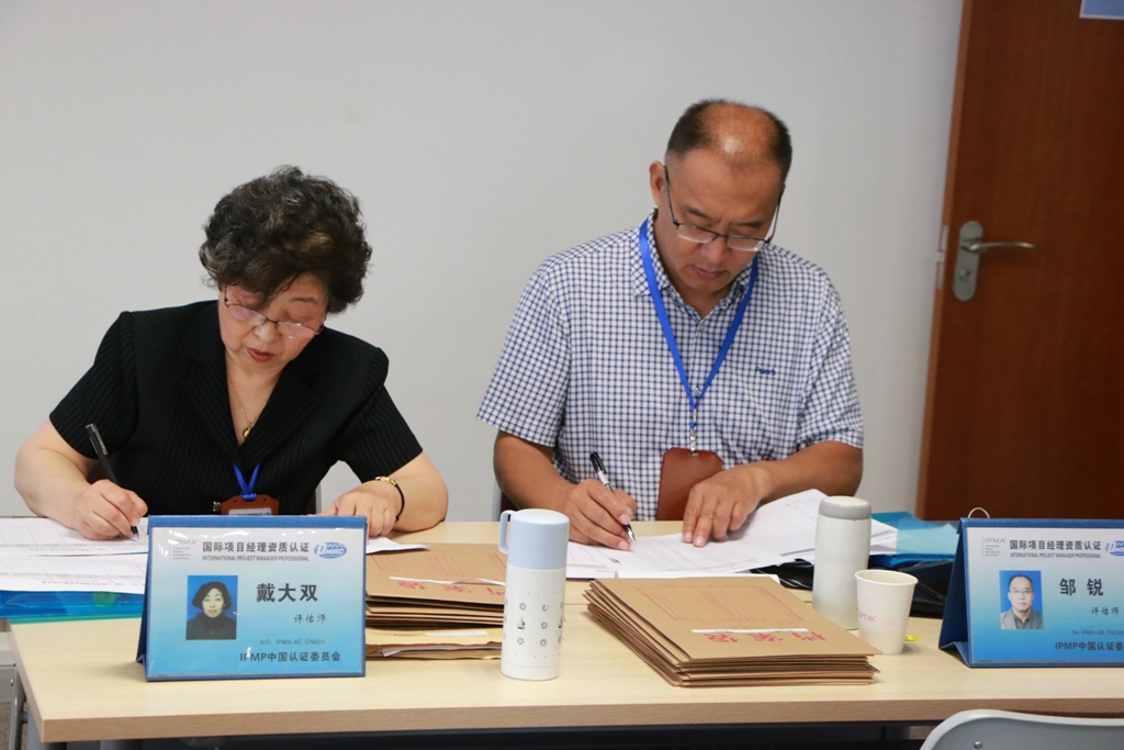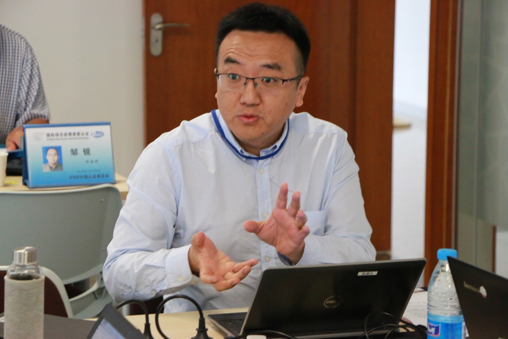 在面试环节,认证学员依次正装出席,向评估师介绍自己从事项目管理工作的经历,展示项目成果,并回答两位评估师就申请表中实际项目工作提出的相关问题。
