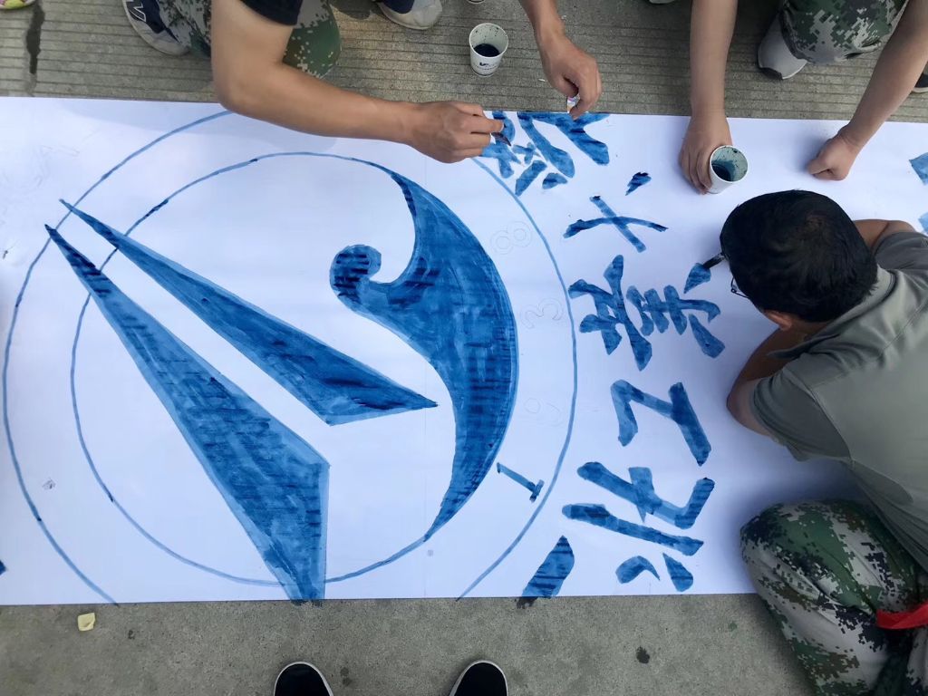 最后,“共绘工大蓝图”活动将整个拓展活动推向了高潮。每一组分别绘制自己的一部分图形,所有新生共同参与,计算比例、绘图、写字,调颜料,各自分工明确。当每个小组将属于自己团队绘制的那份拼图拼成整体时,便形成了以“磁力片