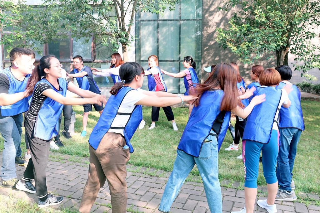 最后,“超级过山车”活动将整个拓展活动推向了高潮。每组队员在拿到任务书后,用给定的PVC管等道具,搭建最高点不低于180厘米,最低点不低于20厘米的轨道,让梦想之球从起点顺利滚动到终点,并根据设计难度系数及完成情况获得相应附加分数。炎炎夏日,方案定好后,队员们齐动手做搭建,遇到困难努力攻克。经过近两小时的合作搭建,10座运载“梦想之球”的“超级过山车”在活动现场一一亮相。当每个小组成员看着“梦想之球”顺利抵达属于自己团队成果的终点时,都不约而同的欢呼起来。