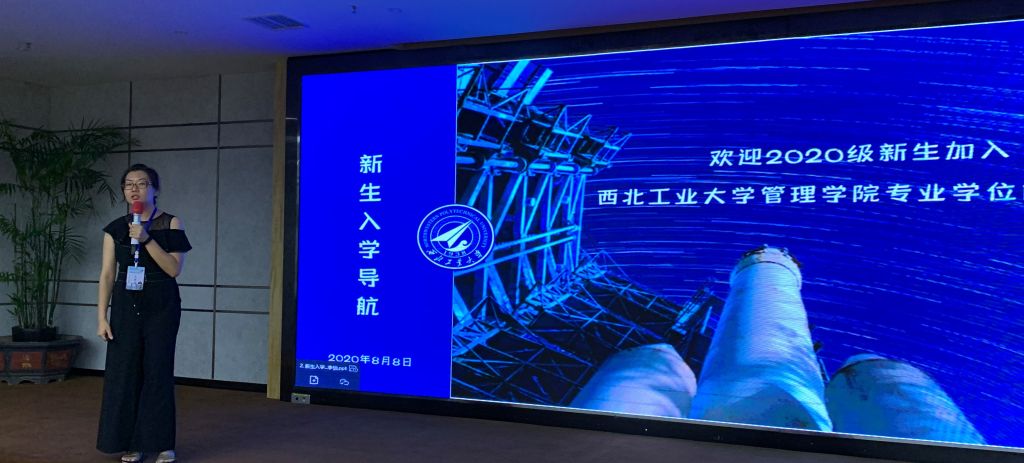 专业学位大家庭表示欢迎。李老师向全体新生详细介绍了学校和学院的发展历程与基本概况,重点讲解了新生迎新系统的使用、综合实践课程的设置以及各类学生赛事组织情况,为新生们描绘了丰富的第二课堂。