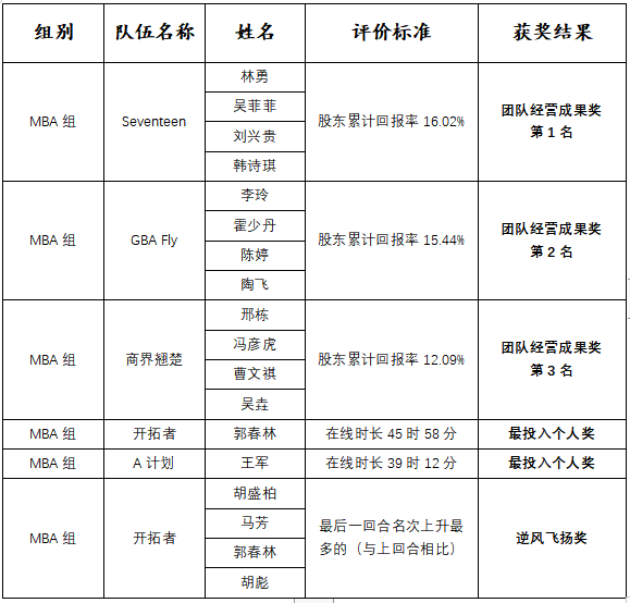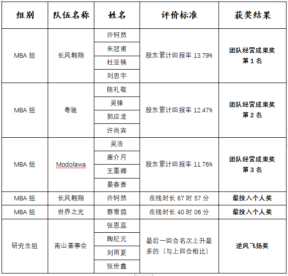 “尖烽时刻”商业模拟校园赛获奖名单
