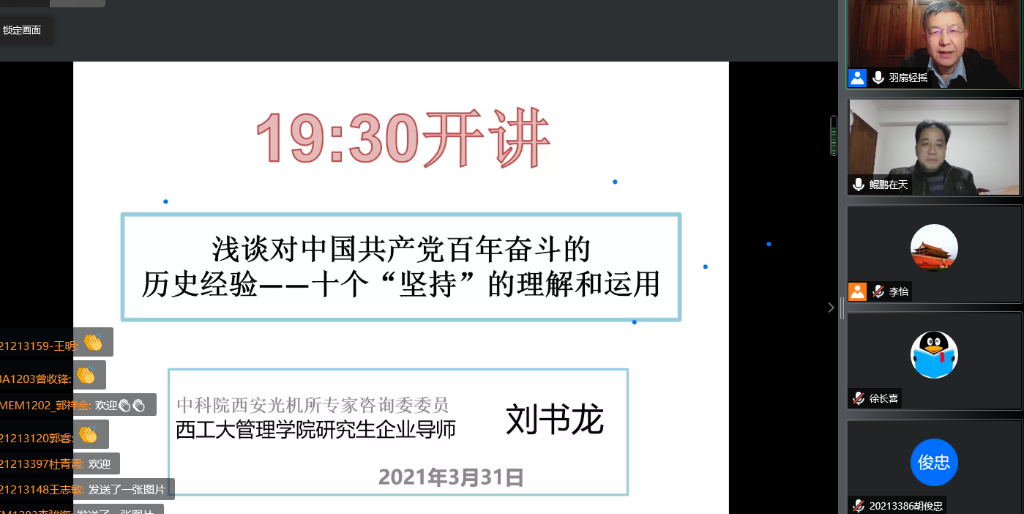 企业导师刘书龙为专业学位研究生作《浅谈对中国共产党百年奋斗的历史经验——十个“坚持”的理解和运用》云上讲座,线上近400名学生参加,讲座由磁力片