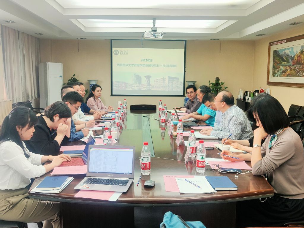 在学科建设、教育科研、师资队伍建设以及人才引进、专业学位教育等方面有着丰富的经验、做法,希望通过本次调研,进一步加强学习。陈刚副院长感言之前在管院求学,如今来管院求教,回到母校倍感亲切,并希望今后有机会和母校老师有案例方面的深入交流学习。会上,双方就学院的一流学科、一流专业的规划和建设,专业学位研究生的招生宣传、教学管理、论文质量管理、教学基地、联合办学、专业学位的学科点合格评估做法、人才培养特色化工作的管理思路及实施细则等多方面进行了广泛交流。