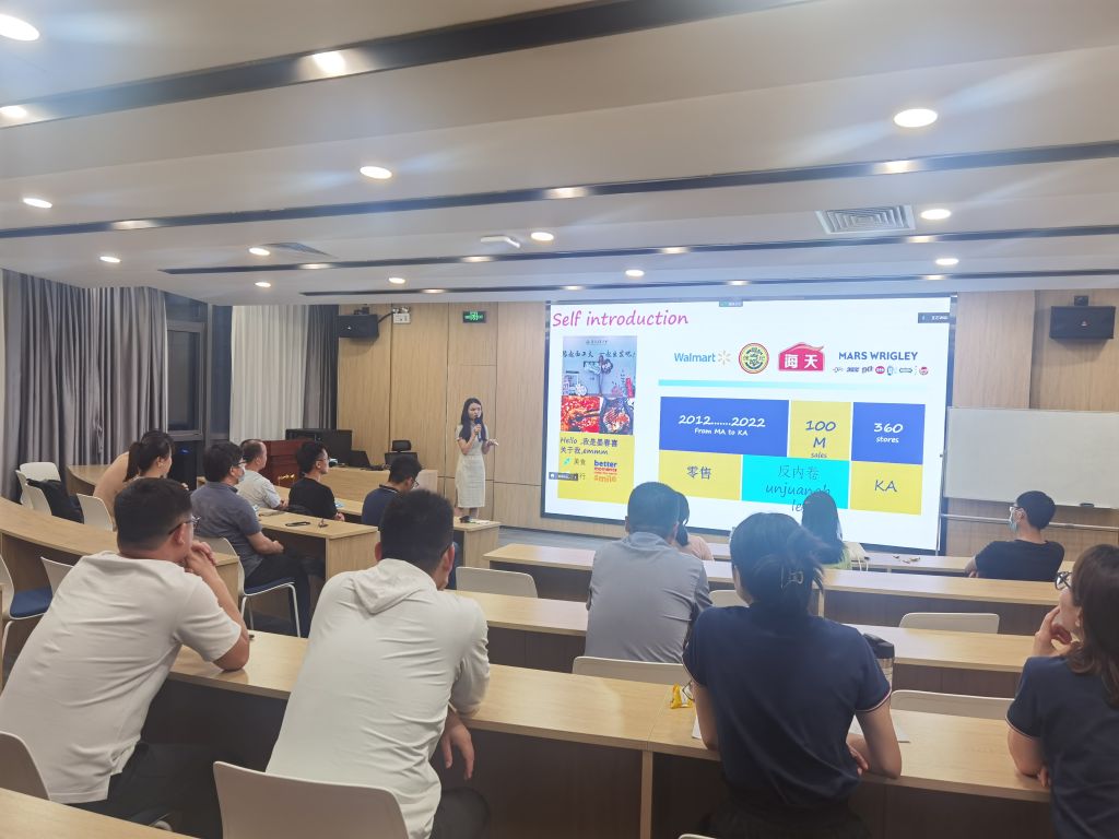 专业学位2020MBA1203班晏春喜同学做《后疫情时代零售新玩法》的分享。作为本年度的第九场同学分享会,本次活动采用线上与线下相结合的形式,线下在三航科技大厦6层教室举行,40名MBA研究生参加,其余师生通过腾讯会议线上参加。