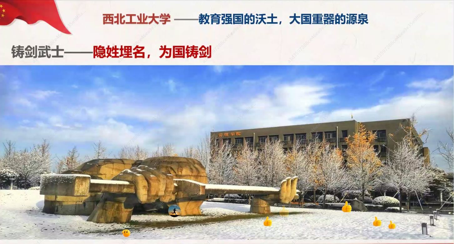 的建立与发展贡献卓著的感人事迹;她从长安校区的铸剑武士,讲到西工大人隐姓埋名、为国铸剑的家国情怀;她从磁力片