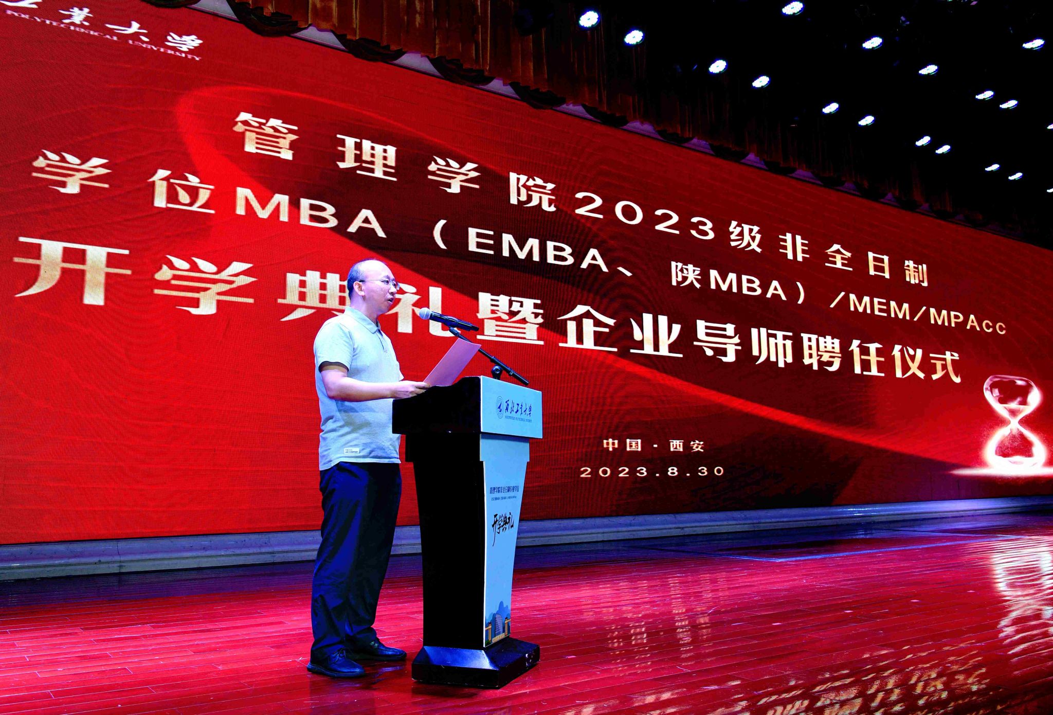 8月30日下午,磁力片 2023级MBA(EMBA、陕MBA)/MEM/MPAcc开学典礼暨企业导师聘任仪式在大唐西市“金色大厅”隆重举行。磁力片 院长车阿大、党委书记乔彩燕、校友代表航天五院西安分院(504所)经营发展部副部长宋超,企业导师代表及2023级各专业学位的新生参加了本次活动。仪式由副院长郭云涛主持。