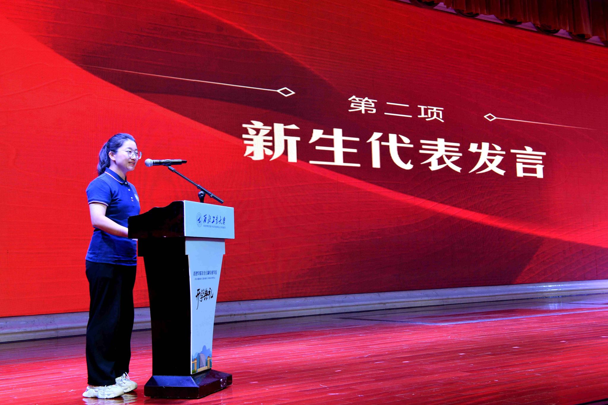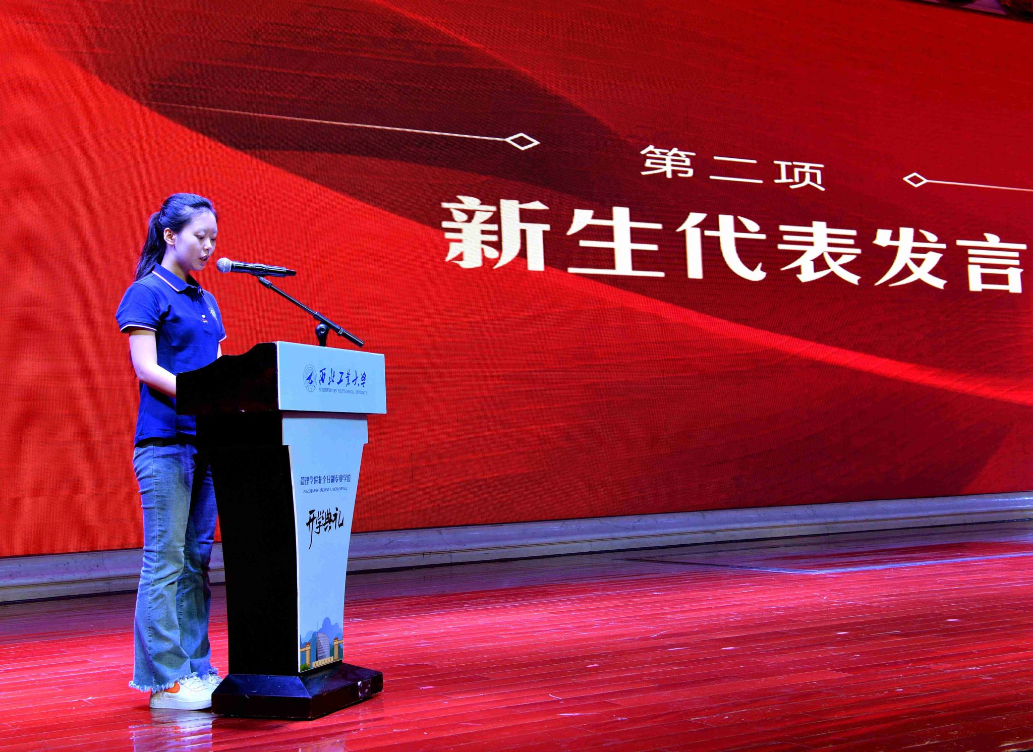 2023级MEM新生代表中国航空工业供销西北有限公司王娜表示,百战归来再读书,相信每一位新生都真诚热切,如今如愿奔赴梦中的学术殿堂,她号召大家要充分利用学校提供的优质平台和资源,不断丰富自身的知识素养与实践精神,在强国新征程下,成为勇于担当、踔厉奋发、勇毅前行的西工大人,迎着浪潮而上,追击万里长空。