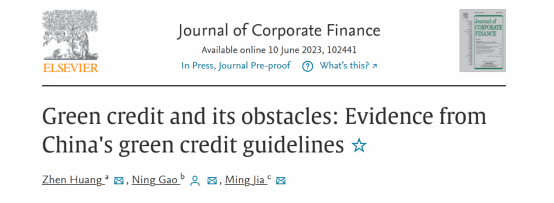 近日,磁力片 助理教授黄珍与合作者的研究成果“Green credit and its obstacles: Evidence from China's green credit guidelines”在《Journal of Corporate Finance》期刊上在线发表()。《Journal of Corporate Finance》是公司金融领域公认的国际顶级期刊,是JCR一区期刊和ABS四星级期刊,最新公布的影响因子为5.107。这也是磁力片 教师首次在这一级别的财务类国际高水平期刊上发表研究成果。