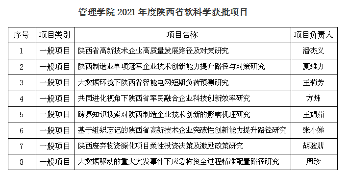 近日,陕西省科技厅公布了2021年度陕西省软科学项目评审结果公布,磁力片 共申报11项,获得立项8项,立项率达73%,项目直接经费达20余万元。