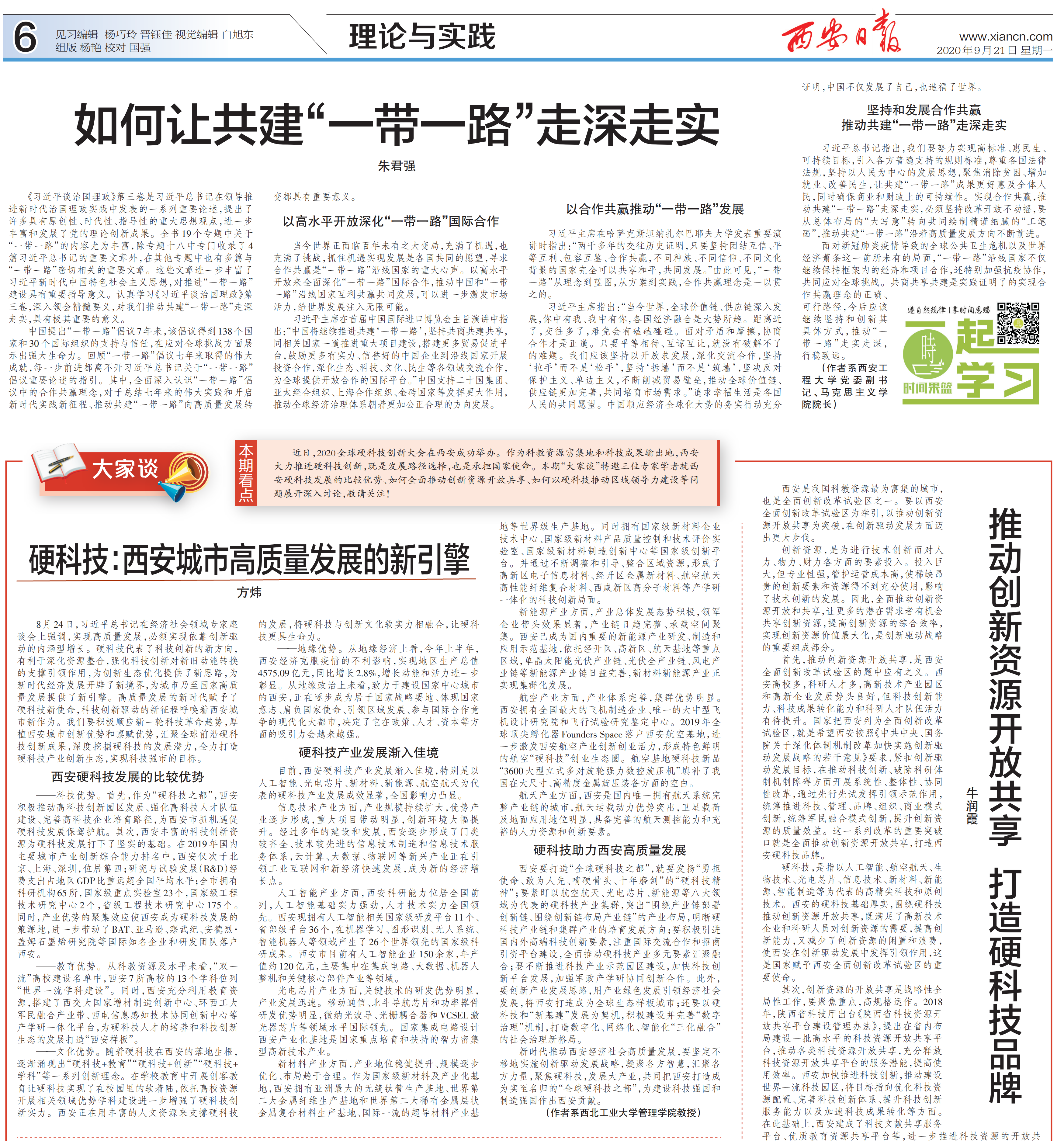 9月21日,《西安日报》第6版理论与实践“大家谈”栏目刊发了磁力片 方炜教授撰写的理论文章——硬科技:西安城市高质量发展的新引擎。文章以本次大会的成功举办为契机,从几个“新”的角度阐述了硬科技对西安城市高质量发展的关键作用,硬科技代表了科技创新的“新”方向,为创新生态优化提供了“新”思路,为新时代经济发展开辟了“新”境界,为城市乃至国家高质量发展提供了“新”引擎;高质量发展的“新”时代赋予了硬科技“新”使命,科技创新驱动的“新”征程呼唤着西安城市“新”作为。文章从科技、教育、文化和地缘四个方面系统分析了西安市硬科技发展的比较优势,并总结了西安市以人工智能、光电芯片、新材料、新能源、航空航天为代表的硬科技产业发展方面做出的显著成绩。