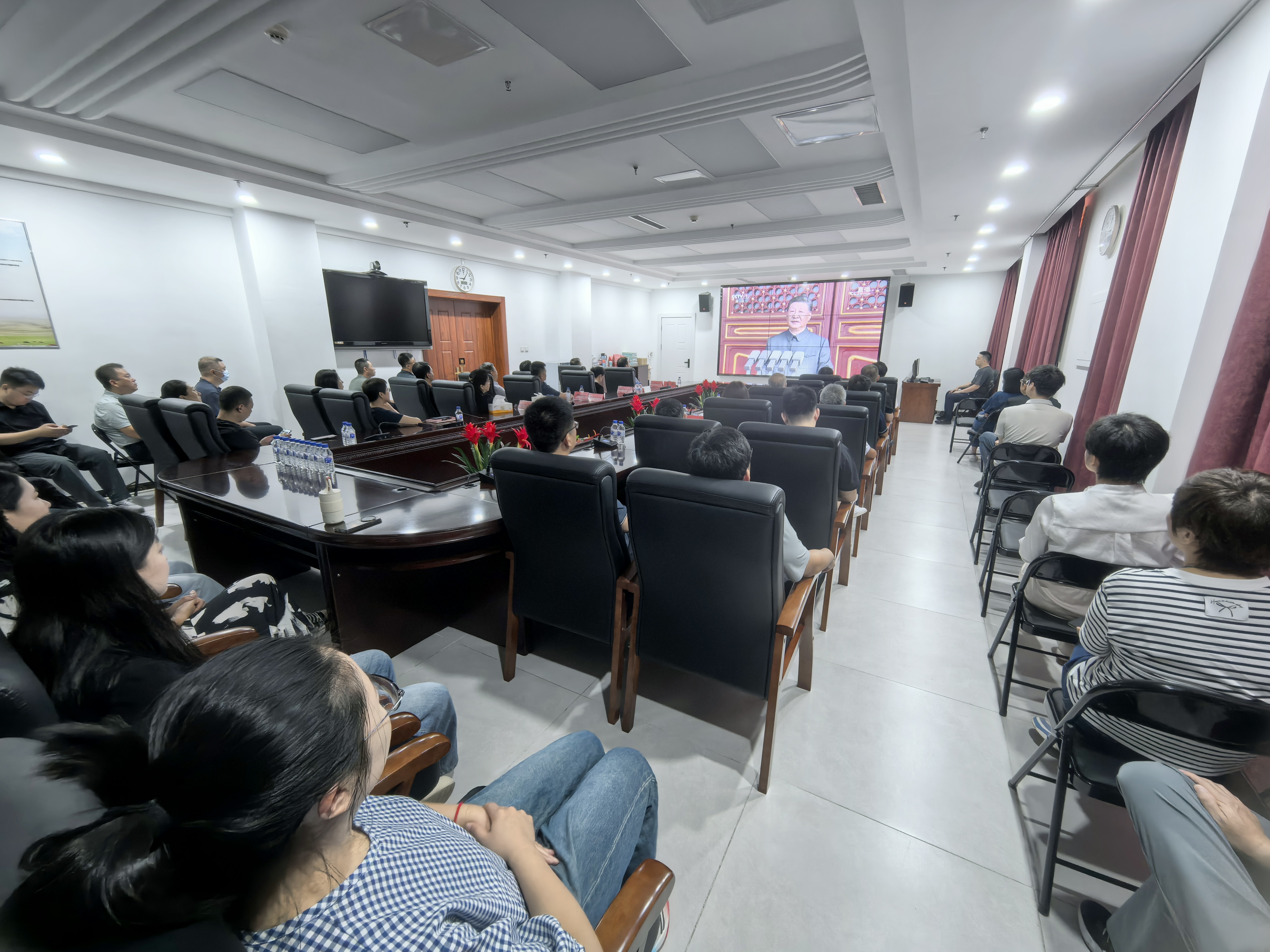 9月3日,纪念中国人民抗日战争暨世界反法西斯战争胜利80周年阅兵仪式在北京天安门广场隆重举行,省林草局、省林业发展服务中心组织干部职工收看这一盛大活动。