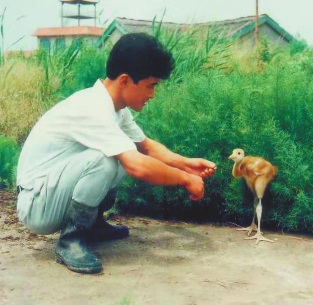 就这样忙活了两个多月,1996年5月1日,第一只小丹顶鹤出生,赵仕伟和同事们给它起名叫“劳动”,第二只5月4日出生,起名“青年”,最后一只因为长得瘦小,大家就叫它“小不点”。