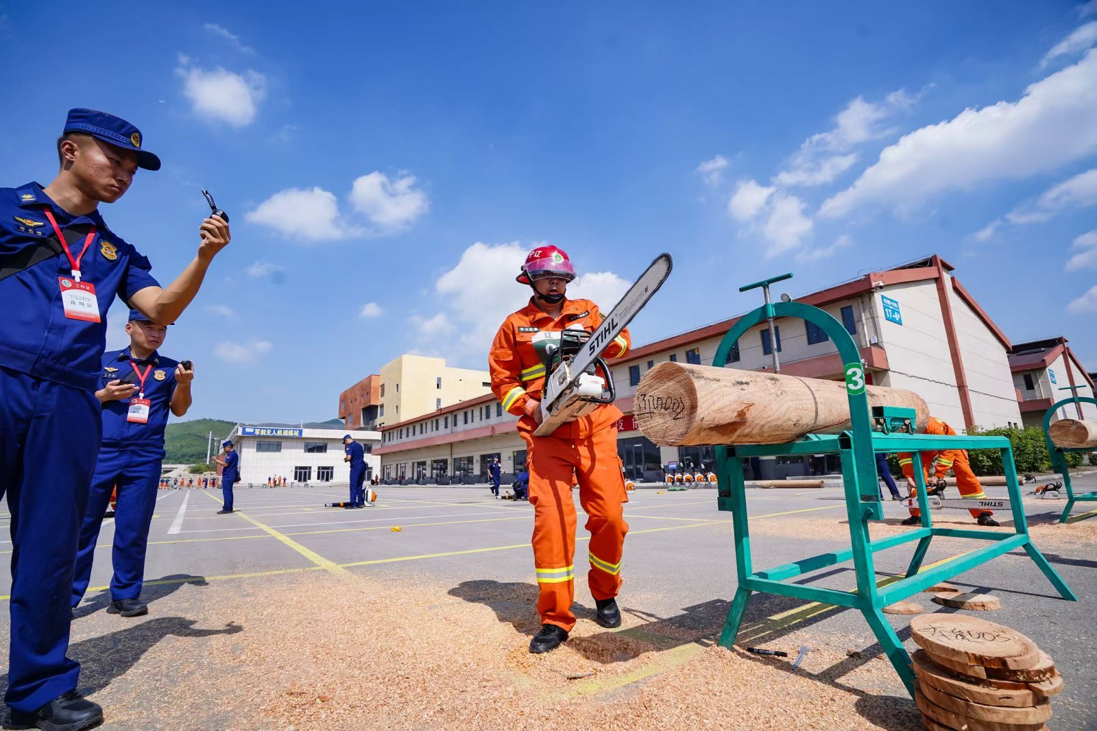 全省林草行业森林消防职工职业技能大赛设个人和团体项目。个人项目包括理论知识考试及水龙铺设、灭火机操作、油锯操作、水枪操作、灭火弹投掷5个综合技能科目。团体项目为携装负重越野、风力灭火协同战术、水泵接力协同战术3个科目。
