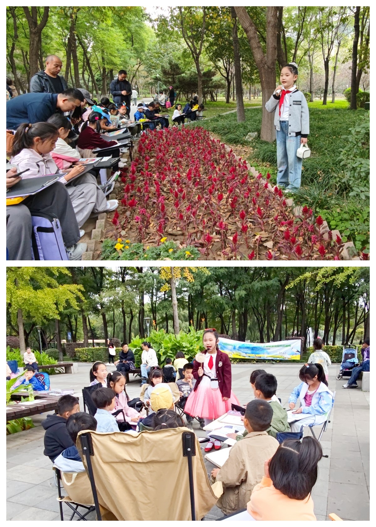 启动仪式后,沈阳市儿童活动中心的老师带领孩子们前往科普公园开展“走进大自然,爱鸟、护鸟”现场写生活动。小学员们在老师的指导下用手中的画笔记录鸟类灵动姿态与自然之美,将生态保护理念融入艺术创作,实现“观察-感知-表达”的深度实践。孩子们稚嫩的画作不仅是他们对生命之美的颂扬,也是生态文明理念在他们心中扎根成长的见证。