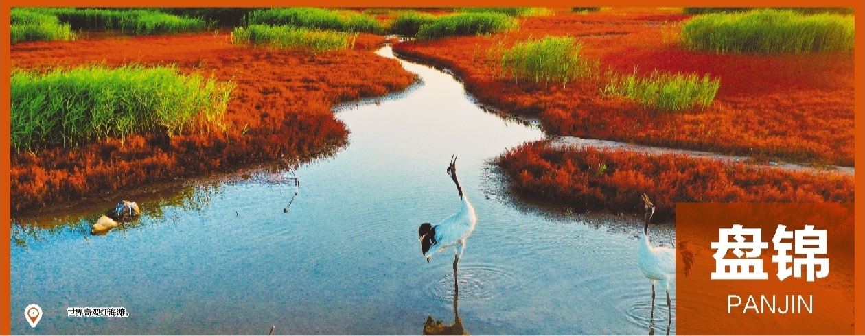 盘锦是一座被轻轻放在湿地上的城市:拥有“天下奇观”5A级景区红海滩、世界上植被类型保持完好的最大芦苇荡,水稻田以外的各类湿地面积达2496平方公里,其中自然湿地2165平方公里、人工湿地331平方公里,湿地保护面积1240平方公里,占自然湿地的57.3%;总面积800平方公里的辽河口国家级自然保护区,被联合国列入世界重要湿地名录,栖息各类野生动物478种,是丹顶鹤南北迁徙的重要停歇地、全球黑嘴鸥最大种群的繁殖地、斑海豹重要产仔地。2022年,盘锦市成功入选国际湿地城市。